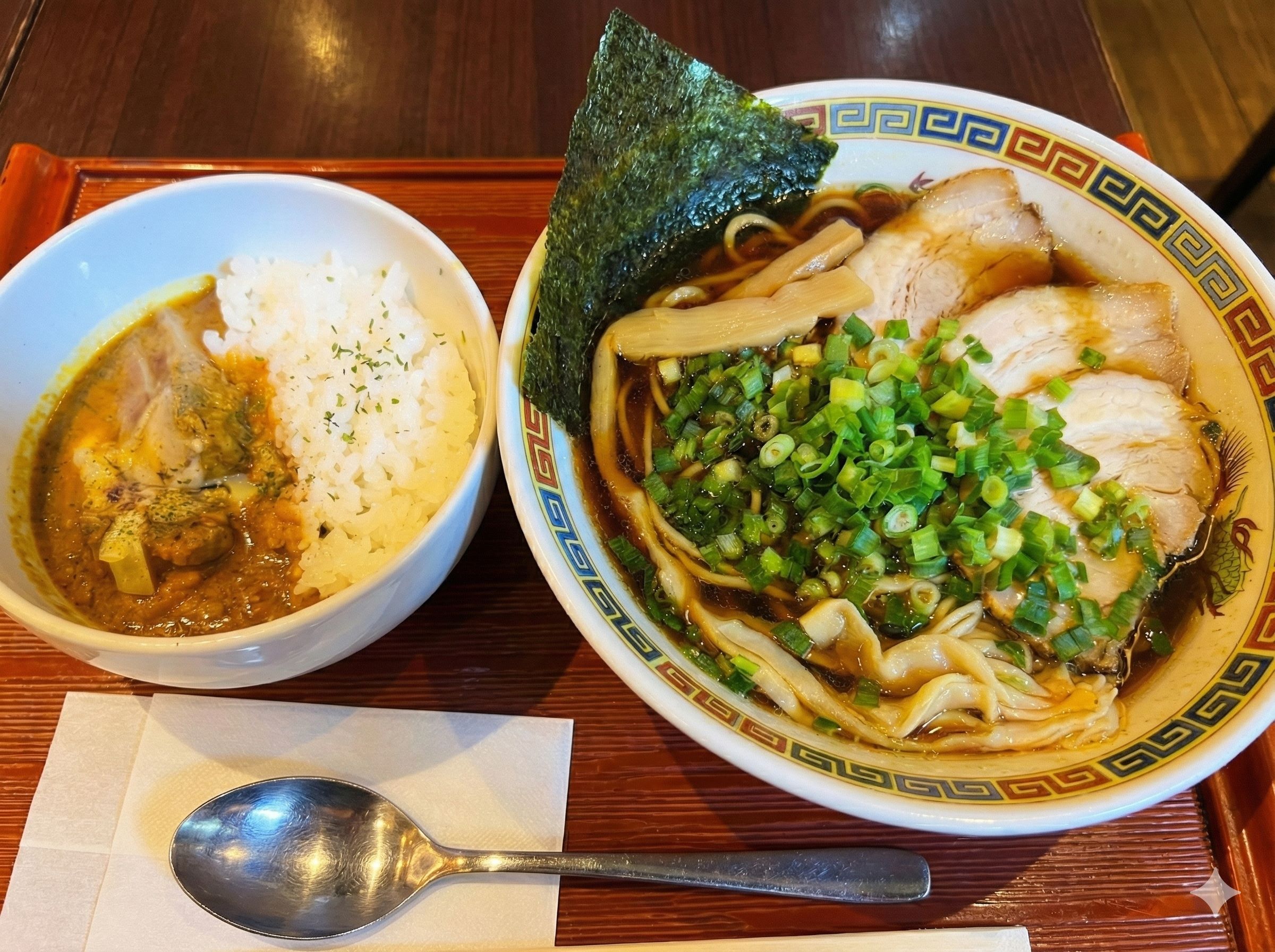 「どっちも食べたい…」という優柔不断な私のためにあるような、「ラーメンカレーセットも用意されていました(笑)。 サウナ後の研ぎ澄まされた味覚で味わう、ラーメンとカレーのコンボ。危険です。